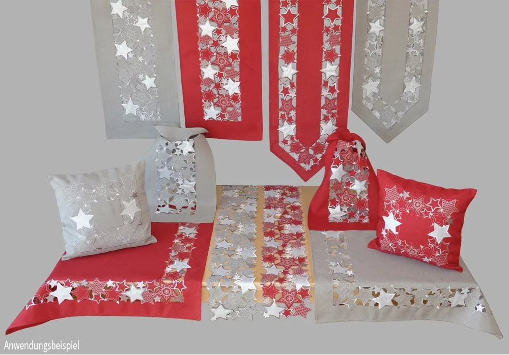 - Tischläufer / Mitteldecken – Sternen Banner mit ausgebrochenen Sternen – weihnachtliche Sterne gestickt – Tischwäsche für die Vorweihnachtszeit