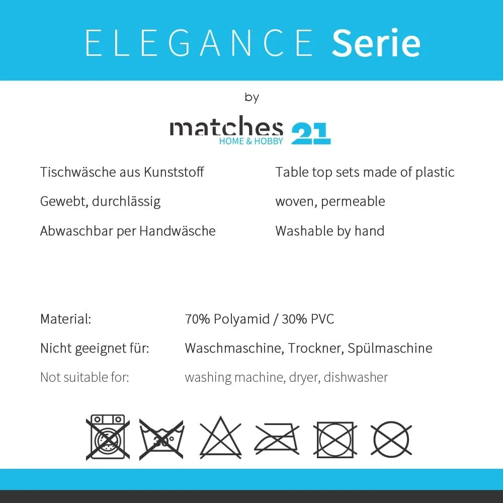 - Strapazierfähiger Kunststoff ohne umlaufende Naht – Platzsets liegen angenehm flach auf dem Tisch auf