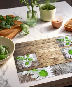 Tischsets Platzsets 4 Stk. Margeriten Margeriten & Holz Kunststoff 43,5×28,5 cm
