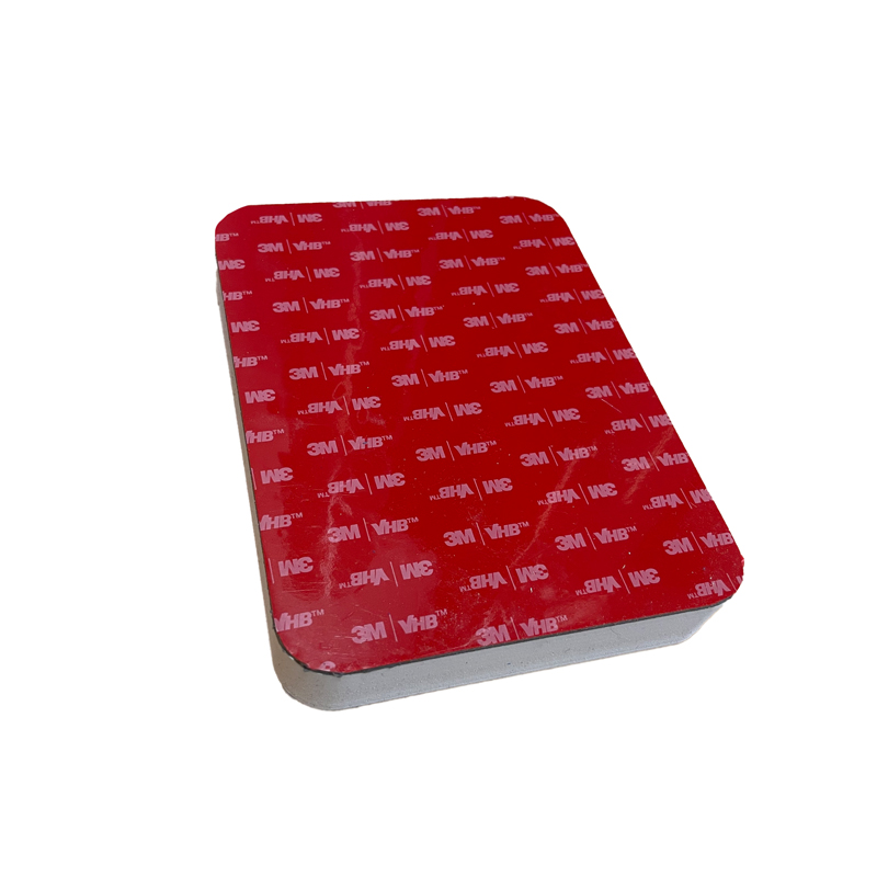 Die Rückseite der Platte ist mit einem 3M VHB Klebepad versehen, womit diese unter Anwedung von Druck an das Heck des Bootes geklebt wird.
