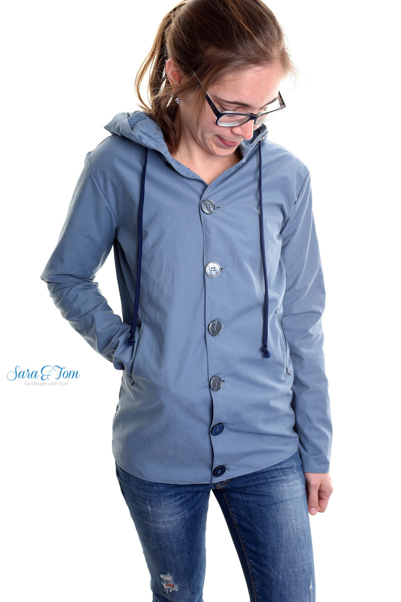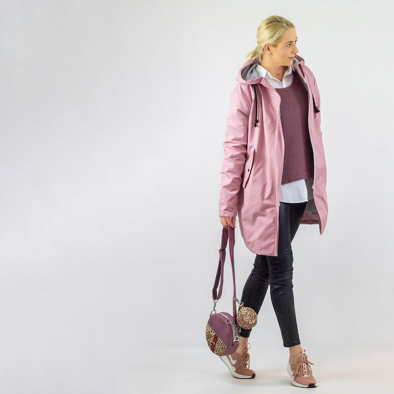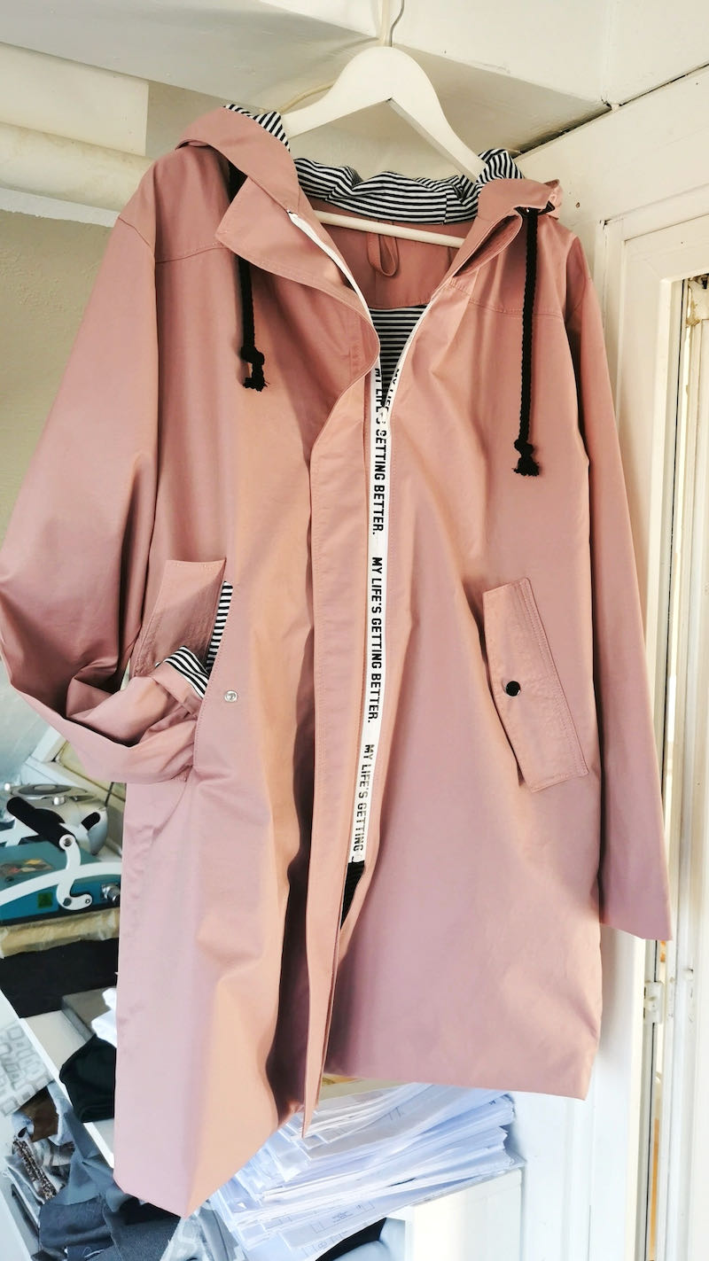 Dieser typische Trench Coat Stoff eignet sich wunderbar für Jacken oder festere Hosen. Die Ware ist unelastisch, aber anschmiegsam. Abbildung Schnittmuster Jacke Henriette und Camelia und Jasmina in Altrosa.