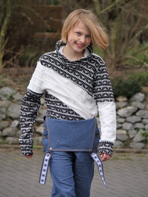 Stoffempfehlung: Jersey und dehnbare Stoffe. Wir haben für die Bebilderung verschiedene Jerseystoffe verwendet. Natürlich kannst Du aber auch alles aus einem Stoff zuschneiden, hier sind alle Varianten möglich.