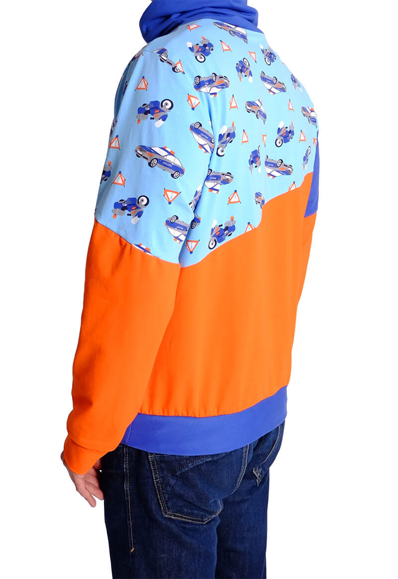 Stoff 1 = Gemusterter Stoff mit Polizeiautos