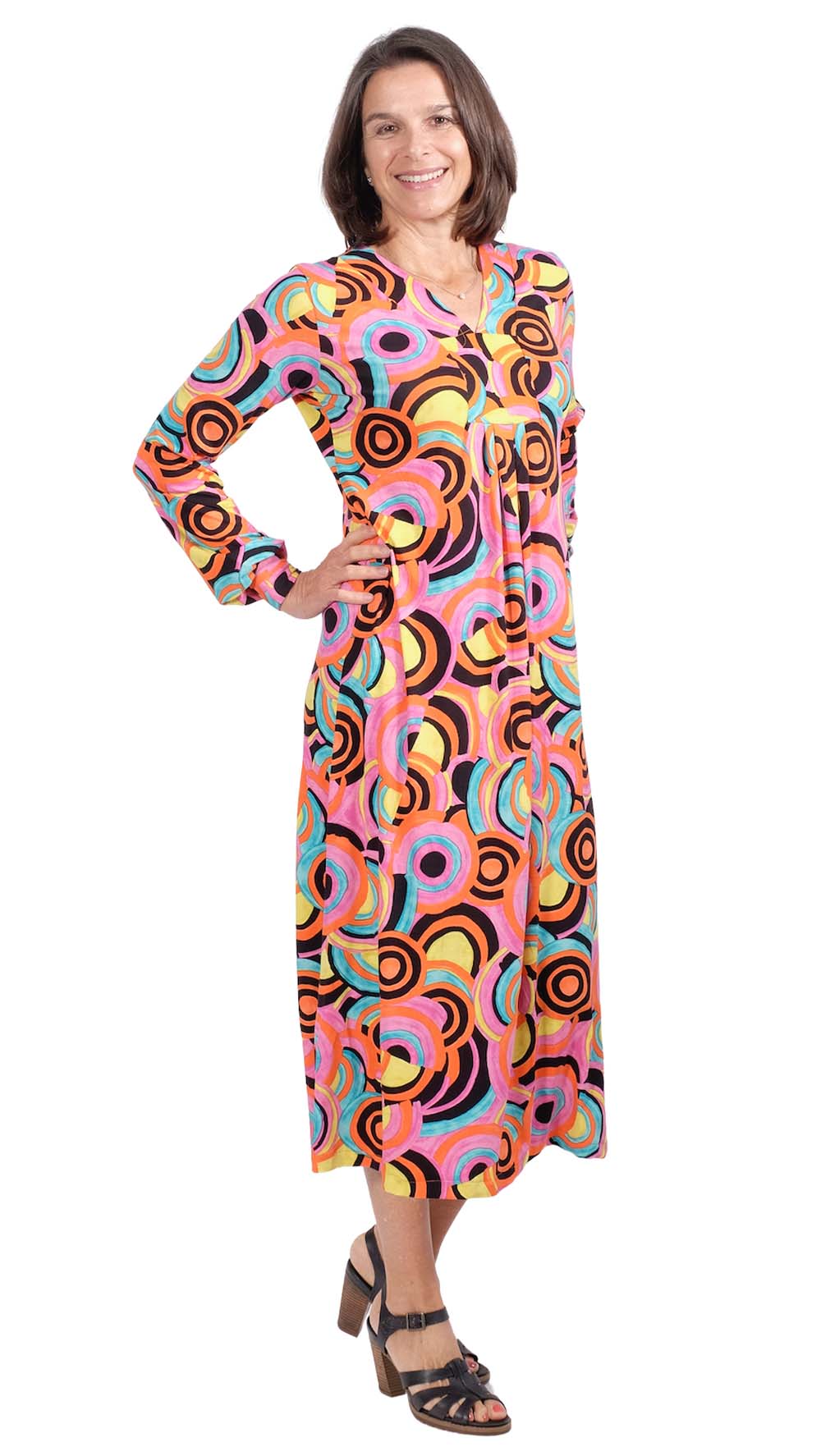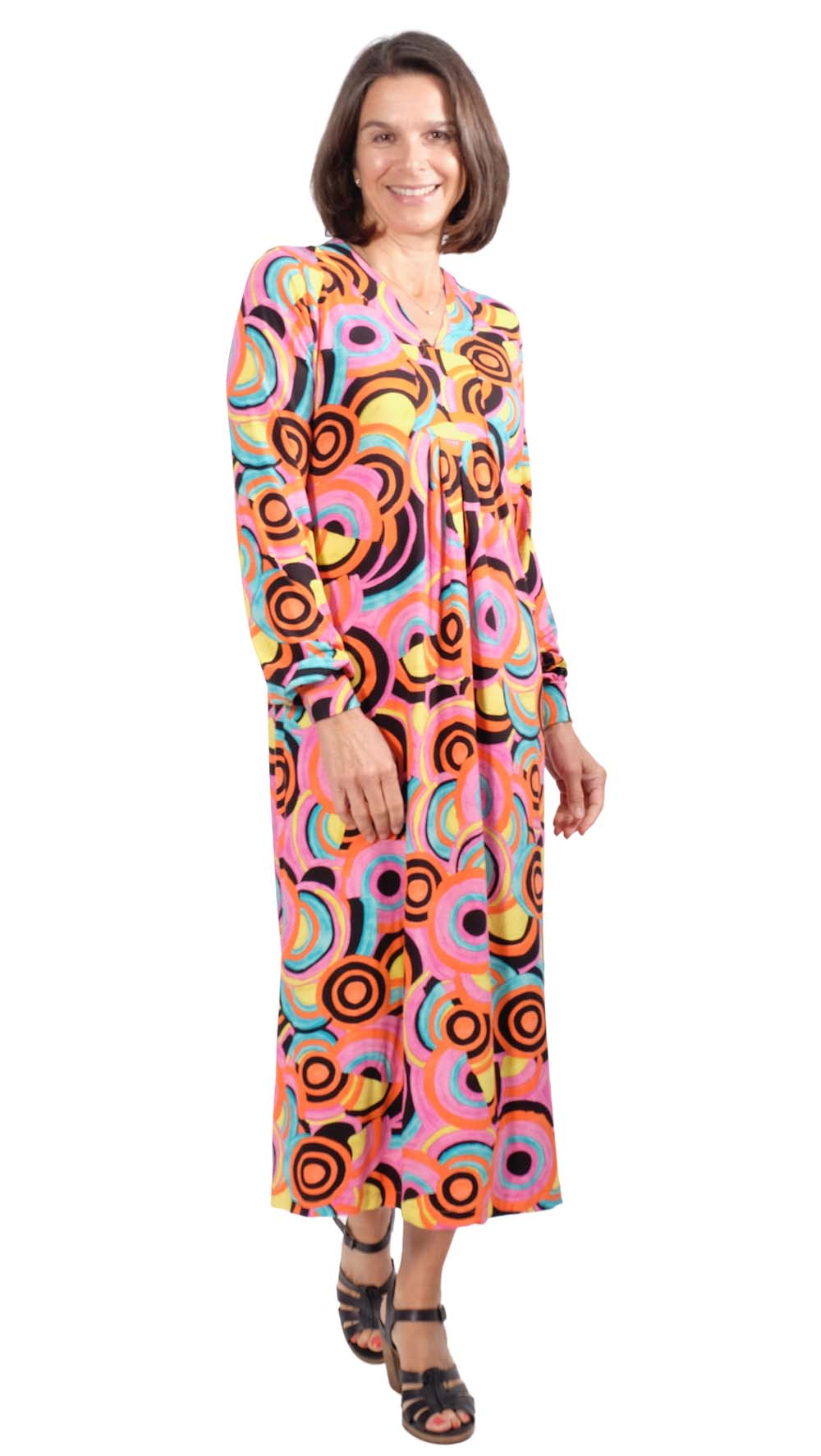 Viskosejersey, Kringel in Pink Orange Gelb