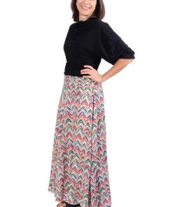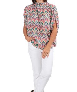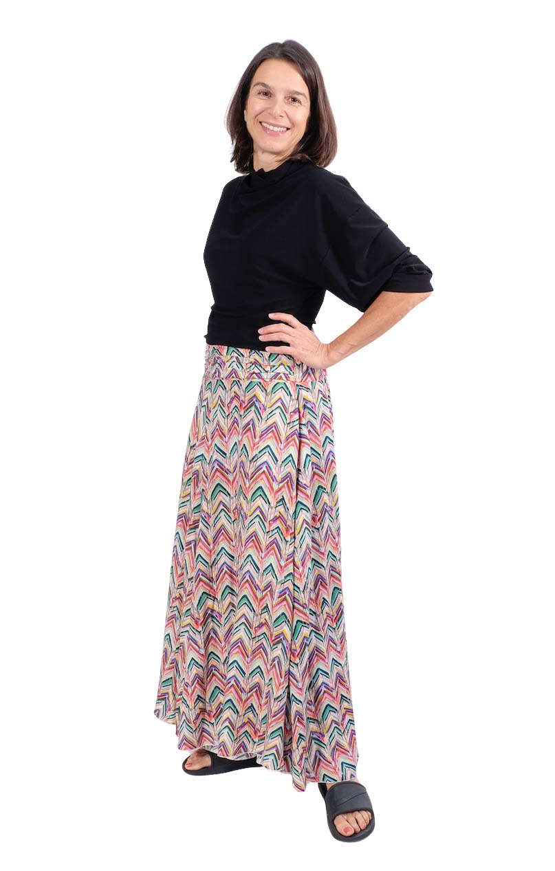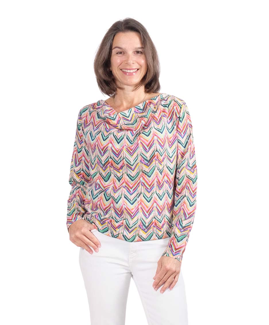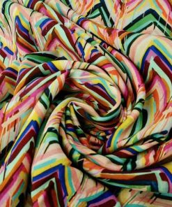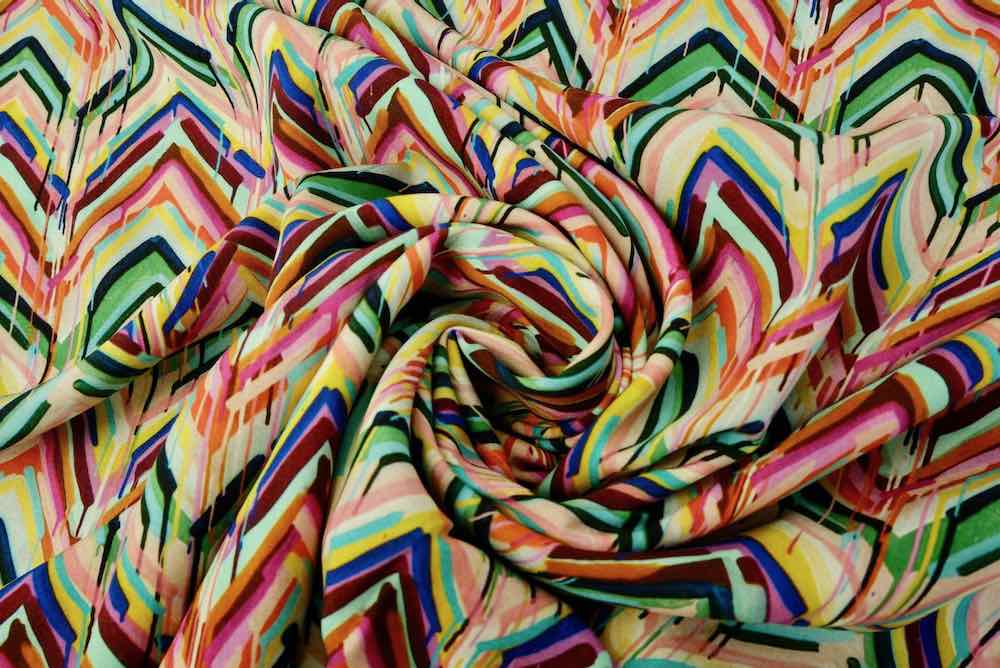 Viskosestoff – Zackenmusterung Orange / Pink / Grün