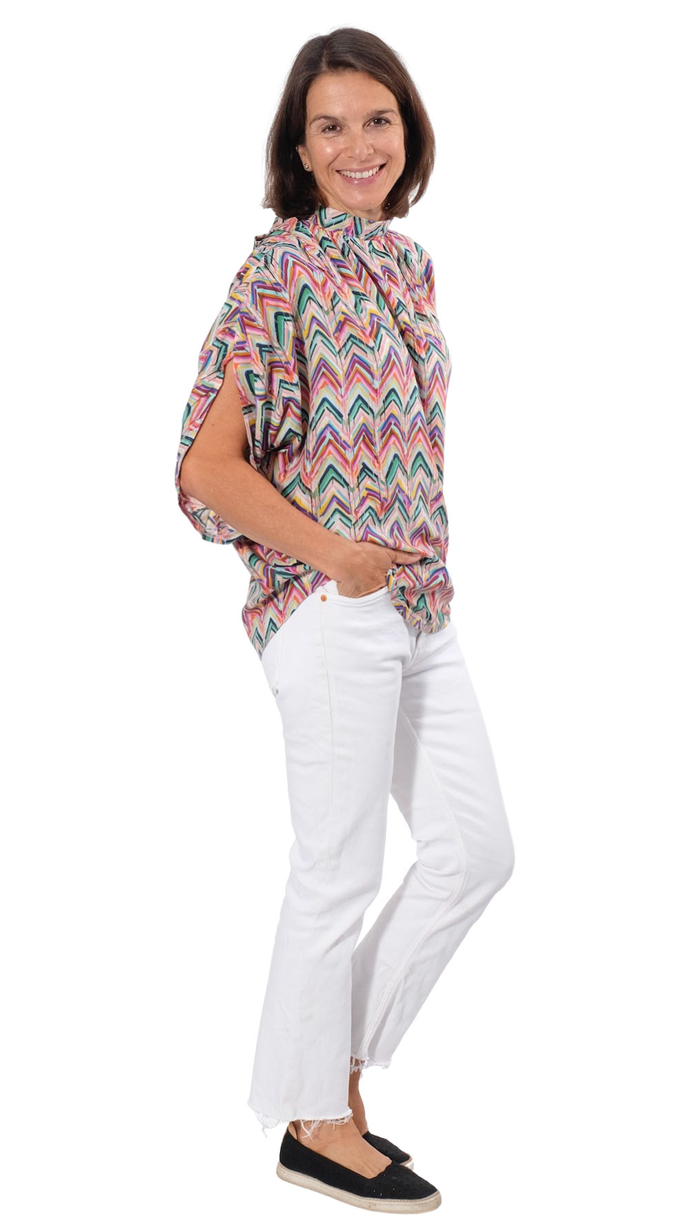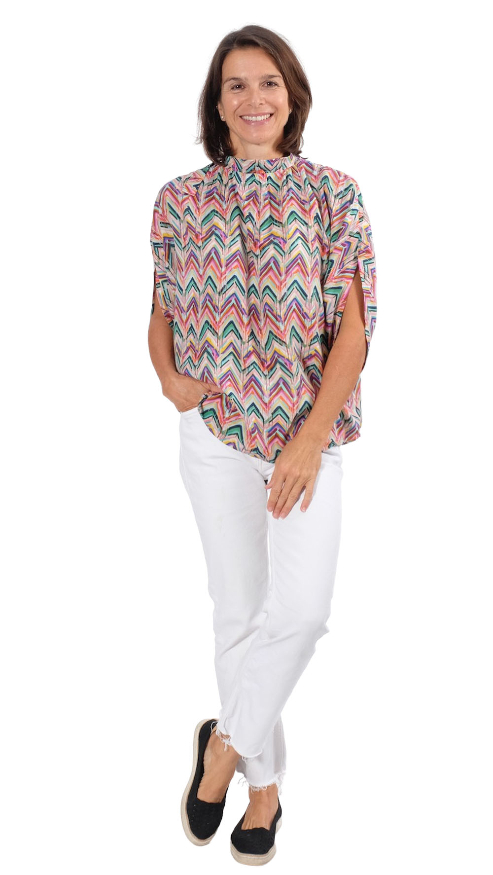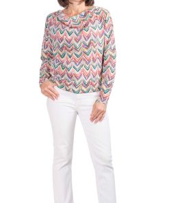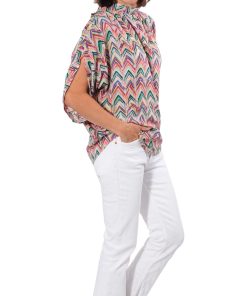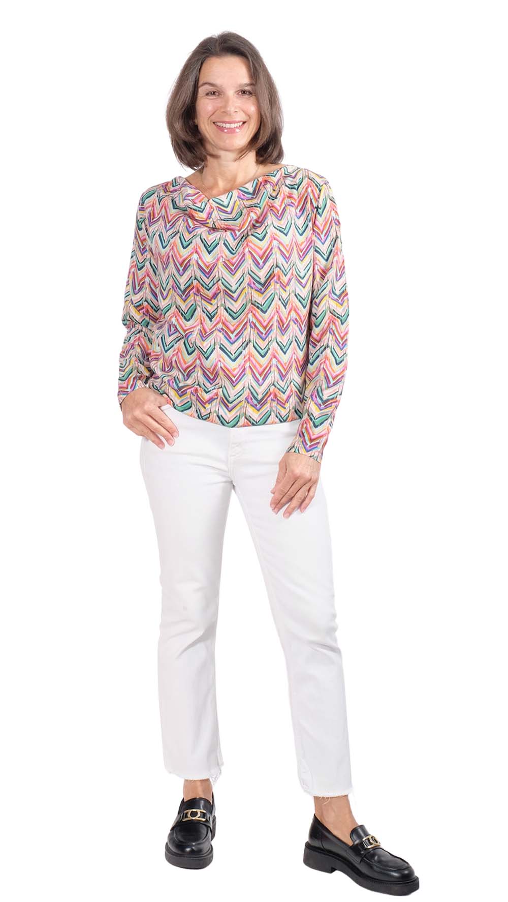 Viskosestoff – Zackenmusterung Orange / Pink / Grün