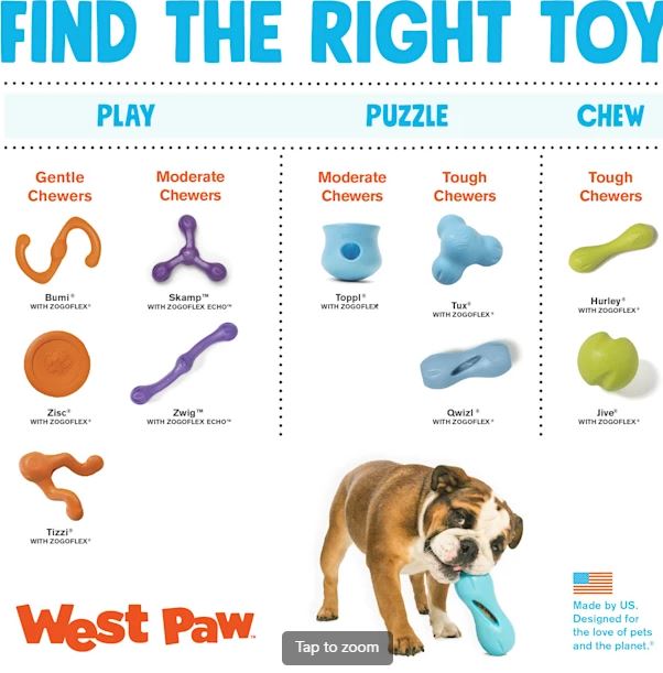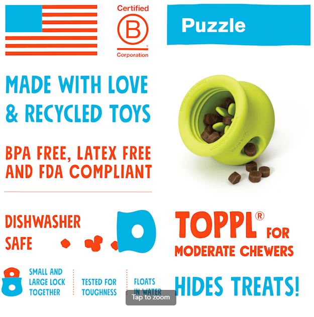 Der West Paw Toppl ist ein Allrounder! Mit Leckerchen befüllt ist er eine tolle und lang anhaltende Beschäftigung für jeden Hund, es können 2 Toppls ineinander gesteckt werden und ergeben ein sehr gutes Intelligenzspielzeug.