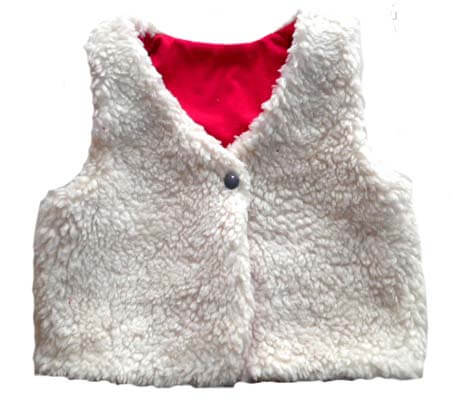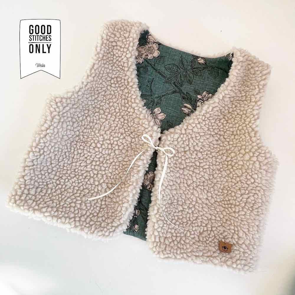Du kannst die Weste aus einem kuscheligen Teddystoff oder Fleece nähen, aber auch aus Denim, Cord oder Baumwolle sieht sie sehr gut aus.