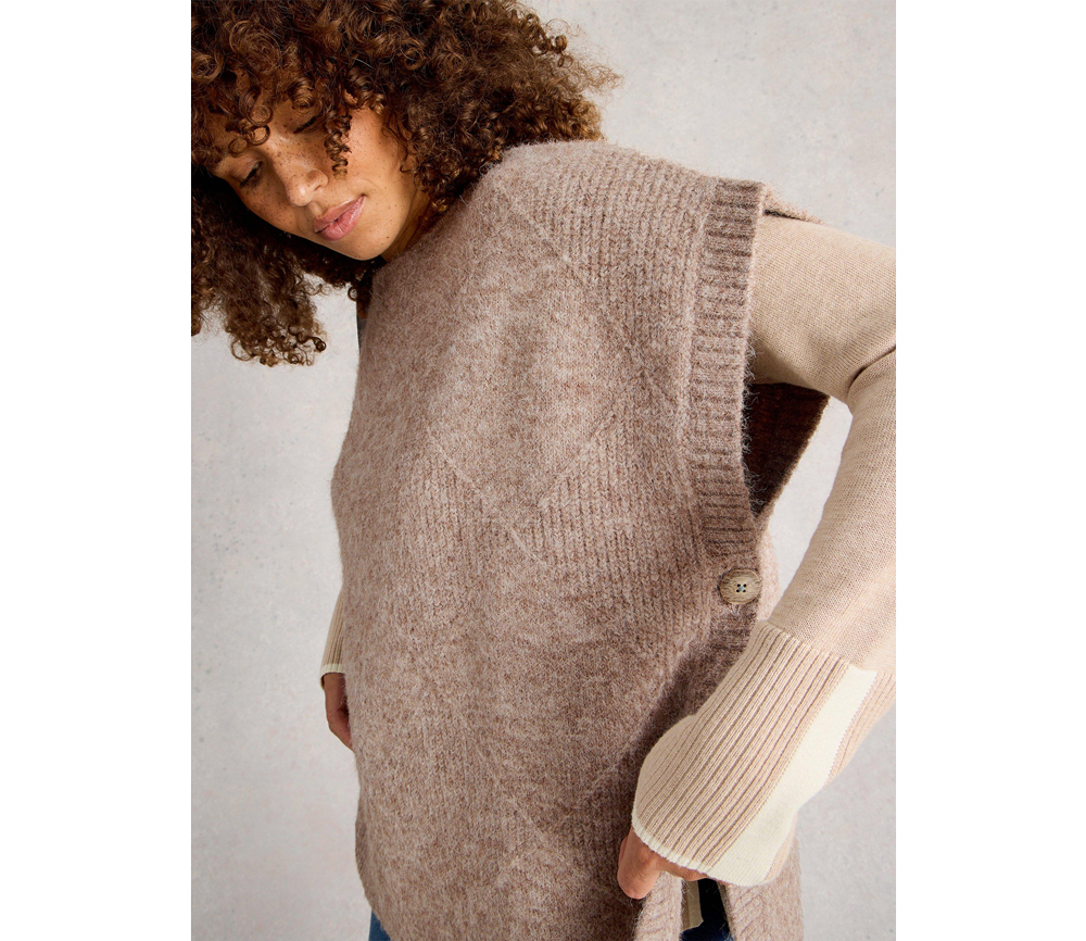 White Stuff – Poncho „DIAMOND“, natural, Bio-Baumwolle