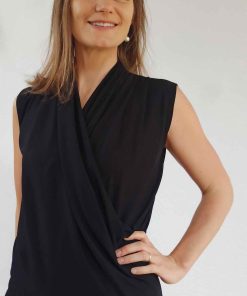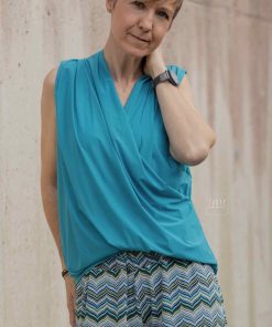 Diese schöne Wickelbluse Tonya ist schnell genäht und ein echter Hingucker! Ob mit langem oder 3/4 Arm, der Look wird je nach Material immer wieder anders sein. Auch ohne Arm macht sie richtig was her. In Kombination mit der Hose Anya ist es optisch gesehen ein toller Jumpsuit.