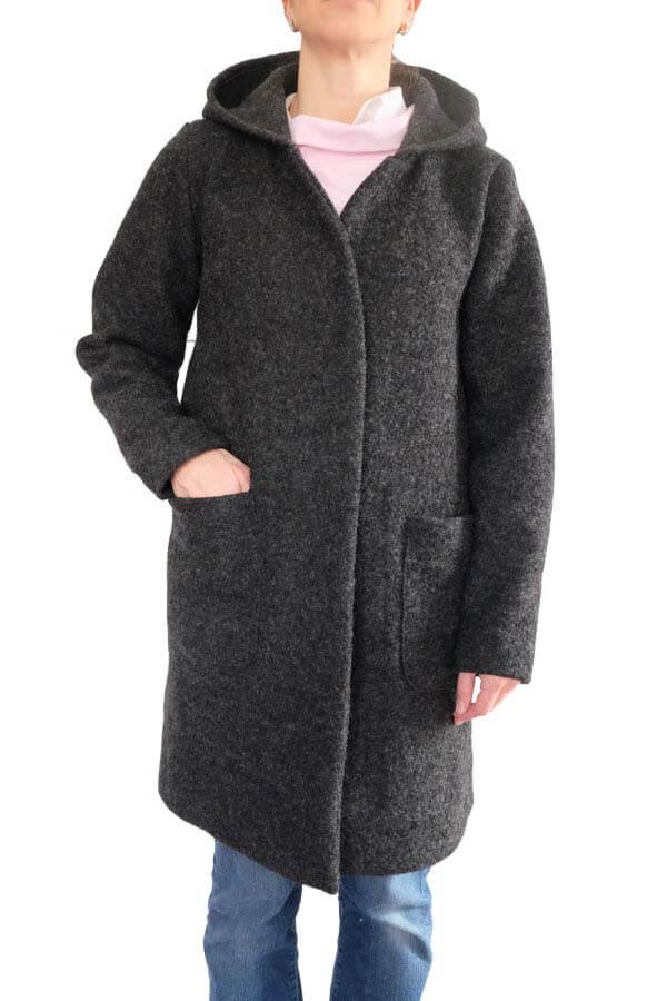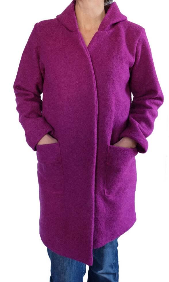 Eine wunderschöne Wollqualität. Ein hochwertiger Wollstoff, ideal für Mäntel und Jacken. Der Artikel ist dehnbar. Wer sehr empfindlich ist, sollte die Qualität abfüttern. Abbildung Schnittmuster Kinderweste Lasse. Damenjacke Lulika in Fuchsia und Anthrazit.Kinderhose Poldi in Grau und Hellgrau. Damenjacke Christin in Kiwi.