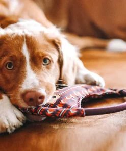 Die Frisbee wurde mit Fokus auf Nachhaltigkeit hergestellt und ist für Hunde konzipiert, die quietschende Spielzeuge mögen.