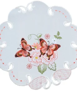 Mitteldecke Tischwäsche Schmetterlinge Blumen Zierkante Stick bunt Ø 40 cm rund
